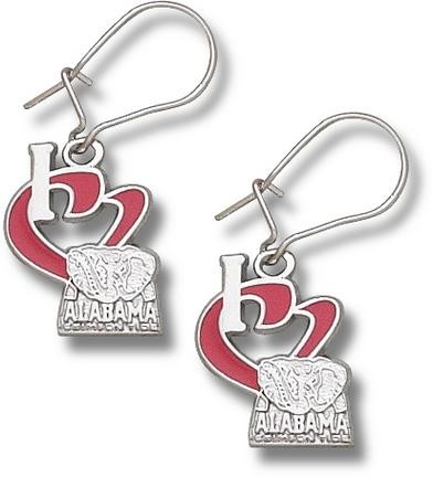 Alabama Crimson Tide 1/2" "I Heart New Elephant" Enamel Dangle Earrings - Sterling Silver Jewelry