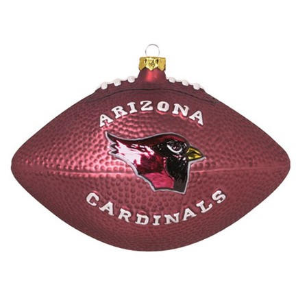 No football fan's home would be complete without one of these festive glass football ornaments! Each glass football is designed with official NFL team colors emblazoned with an authentic Arizona Cardinals logo. Each football ornament has an official NFL logo embossed on the back and is packaged in an official NFL box.