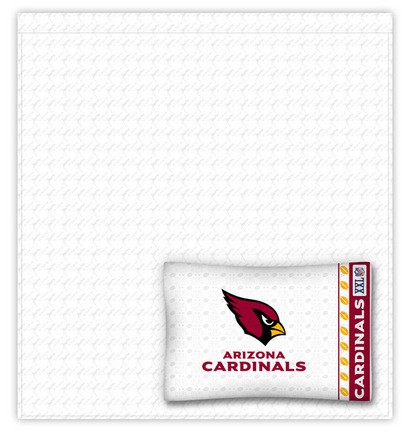 Coordinating Sheets Sets are available in Twin, Full, and Queen sizes and are 100% Microfiber Sheeting, for 11" mattress depth. Only Pillowcases are printed with the NFL Arizona Cardinals logo and wordmark. Flat and fitted sheets are a white-on-white sports print. Machine washable. Pillowcases also sold separately.