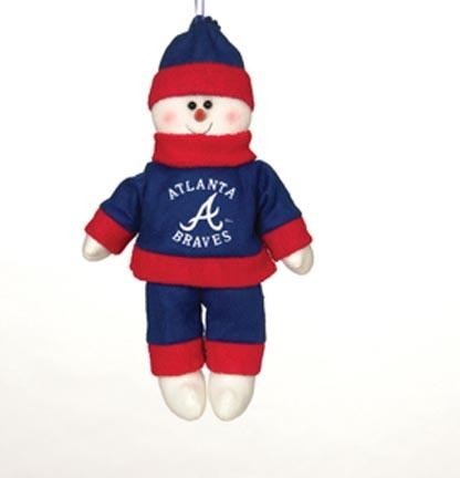 No baseball fan's home would be complete without one of these festive cloth snowmen! Each adorable 10" MLB Snowflake FriendTM is dressed in official Atlanta Braves colors and emblazoned with an authentic logo.