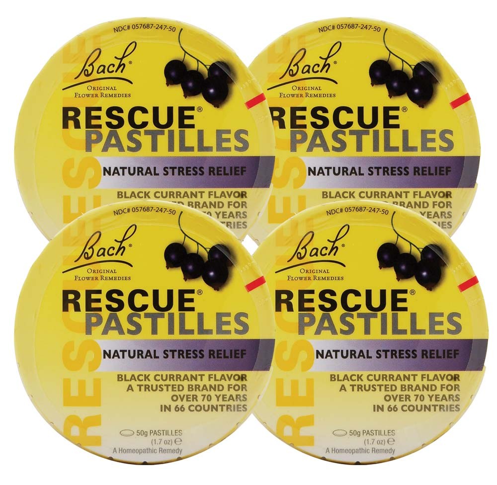 Bach Rescue Remedy Black Currant Pastilles Candy (Pack of 4) - Natural Homeopathic Stress Relief