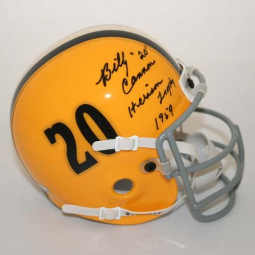 Billy Cannon autographed throwback LSU Tigers NCAA mini helmet with Heisman inscription. See the other Billy Cannon items that we offer. This item comes with a Victory Collectibles certificate of authenticity. Give someone an Billy Cannon autograph today!
