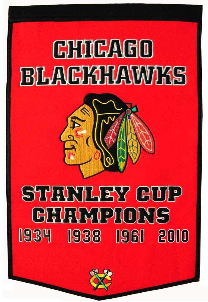 Dynasty banners are Winning Streak Sports' "Signature" collection of wool banners measuring 24" W x 36" L. They are inspired by the true NHL dynasties of the past, honoring the Chicago Blackhawks traditions and memories.