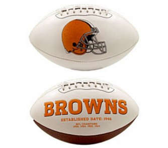 The perfect item for any Cleveland Browns fan! A timeless classic football with timeless appeal. This football features an embroidered primary logo and embossed team history. Packaged with a permanent ink autograph pen makes this football perfect for autograph shows and game day events. This football has three white panels and one synthetic leather panel. This full size football is made by Fotoball. Limited edition of 10,000.