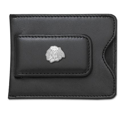 Columbus Blue Jackets 5/8" Sterling Silver Head Logo on Black Leather Money Clip / Credit Card Holder