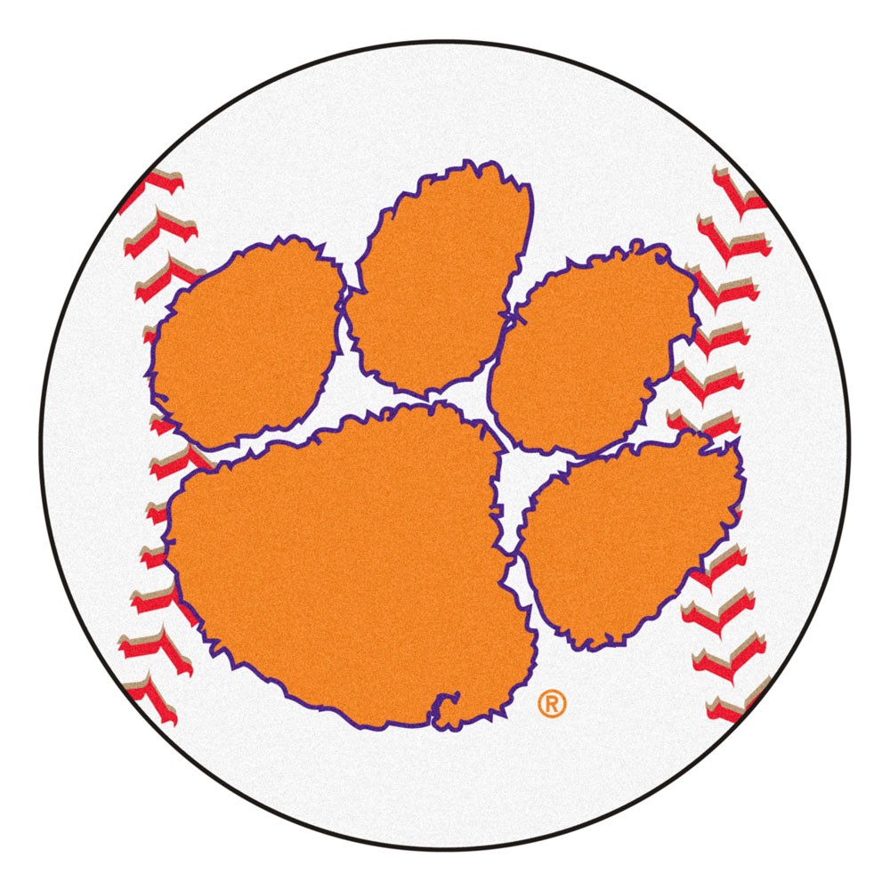 For all those Clemson Tigers Fans out there: baseball-shaped area rugs by FANMATS! Made in the U.S.A. 100% nylon carpet and non-skid Duragon®: latex backing. Machine washable. Officially NCAA licensed. Chromojet painted in true team colors.