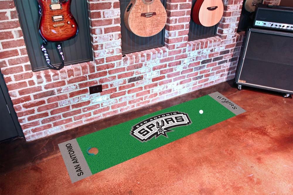Officially NBA licensed San Antonio Spurs putting green runner. Realistic putting surface. Chromojet-printed nylon surface with vinyl backing. Can be used as a runner when not practicing. Comes with plastic putting cup.