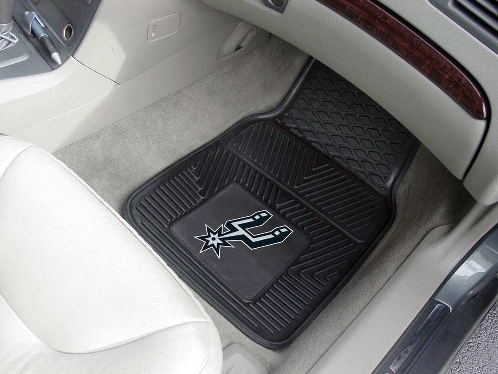 Protect your vehicle's flooring while showing your San Antonio Spurs pride with car mats by FANMATS. 100% vinyl construction with non-skid backing ensures a rugged and safe product. Universal fit makes it ideal for cars, trucks, SUVs, and RVs. The officially licensed NBA design in true team colors are permanently molded for longevity.