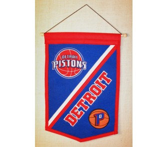 This Detroit Pistons NBA Traditions banner is constructed with high quality embroidery and applique. It comes ready to hang with a rod and attached cord.