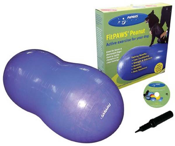 The Peanut is used for core conditioning of sporting and working dogs as well as for animal rehabilitation and therapy. The unique shape of the peanut limits its movement to front/back or side/side, important for dogs new to this type of training. You can also adjust the balance challenge by under-inflating so the ball is not as firm.