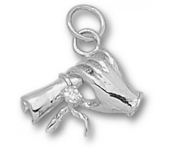 "Graduation Hand with Diploma" Charm with .03 Cubic Zirconia - Sterling Silver Jewelry