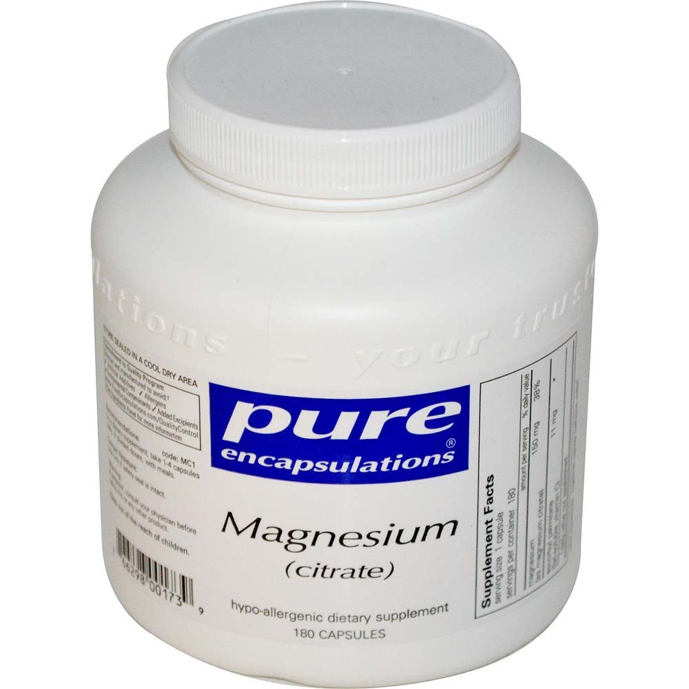 Hypoallergenic Magnesium Citrate Dietary Supplement from (180 Vegetarian Capsules) Pure Encapsulations®