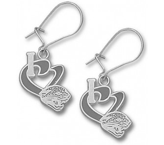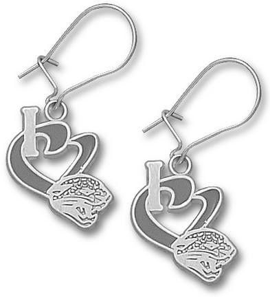 Jacksonville Jaguars 1/2" "I Heart Jaguar Head" Enamel Dangle Earrings - Sterling Silver Jewelry