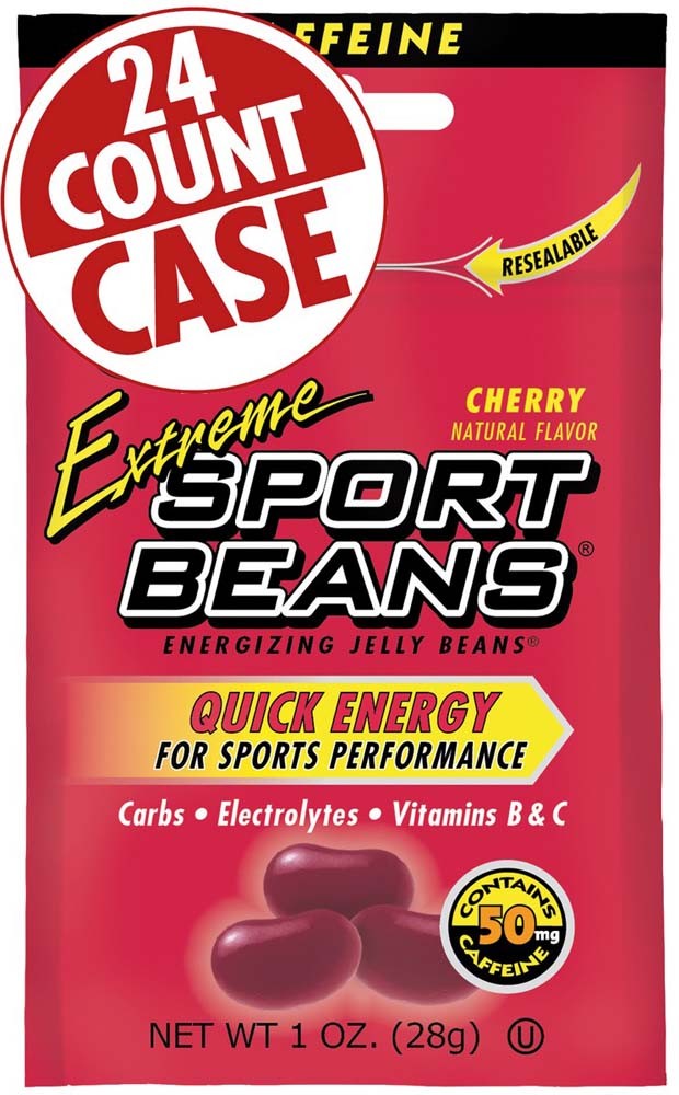 When your workout needs a little more kick, there's Extreme Sport Beans. Each serving contains 50 mg of caffeine, about the same amount in a half a cup of brewed coffee, along with Sport Beans'® clinically proven formula of carbohydrates, vitamins and electrolytes. And the delicious Cherry flavor will keep you refreshed throughout your exercise.