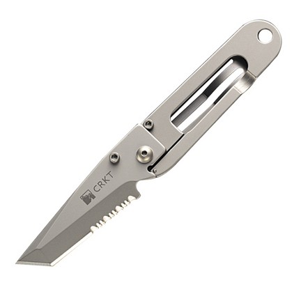 K.I.S.S.--It's one honey of a knife! "Keep It Super Simple" said Ed Halligan, Knifemaker's Guild Member, and designer/engineer of CRKT's new K.I.S.S. knife (Patent Pending). And it is! The compact, palm-size folder has two major components--Blade and Frame--precision fine blanked for superior fit and smooth operation. The ingenuity of the K.I.S.S. Frame Lock design is that the secure, safe and strong blade lock serves not only as part of the frame but also as the handle itself. A thumb stud is used to one-hand open the blade, and as the blade is fully rotated open the Frame Lock snaps crisply in behind the blade to guarantee a sound lock-up. And the blade can be closed by one-hand by simply releasing the Frame Lock. The blade shape is tanto-inspired--chisel-point on the front and flat on the back-side--so that when the blade is closed onto its handle/frame, the precision fit effectively "seals" the cutting edge to the frame, even though it's exposed. An accessible hex-head fastener allows easy, precise adjustment of open/closing tension. Both blade and frame are AUS6M stainless steel and are fine bead-blast finished as is the pocket/money clip and other hardware. The design of the K.I.S.S. pocket/money clip permits it to be used in a variety of ways: clipped to the pocket; as a money clip knife; and with split-ring or lanyard, as a key chain knife. The Combined Edge K.I.S.S.: Combined Razor-Sharp and Triple-Point Serrated cutting edge, 2.25"" (5.7 cm) blade, 3.5" (8.9 cm) closed length.