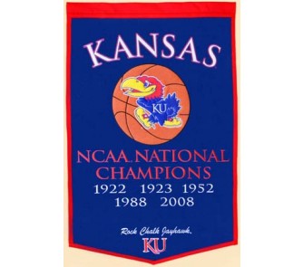 Dynasty banners are Winning Streak Sports' "Signature" collection of wool banners measuring 24" W x 36" L. They are inspired by the true NCAA dynasties of the past, honoring the Kansas Jayhawks traditions and memories.