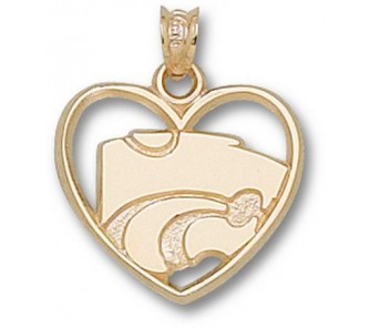 Kansas State Wildcats "Power Cat" Heart Pendant - 14KT Gold Jewelry