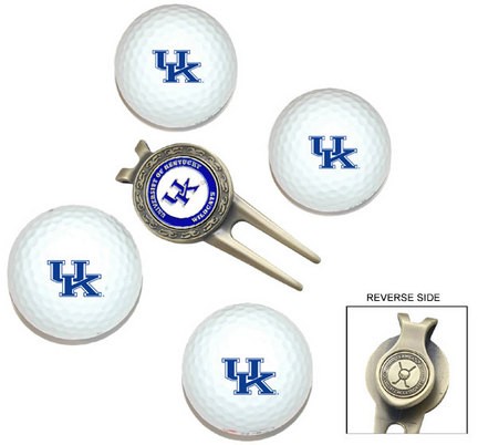 This unique gift set includes four regulation golf balls, one antiqued brass divot tool and one magnetic golf ball marker. Each item is imprinted with the NCAA Kentucky Wildcats logo.