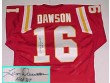 A Certificate of Authenticity is included with this Len Dawson autographed Kansas City Chiefs NFL jersey.