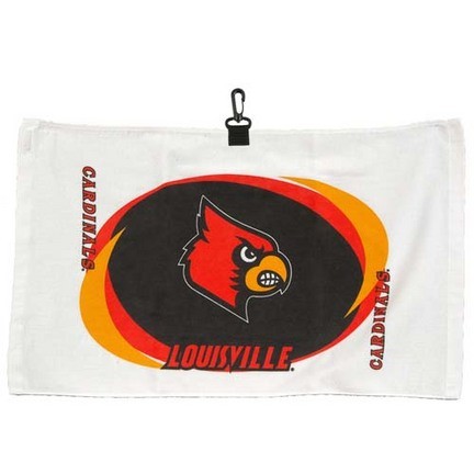 Printed 16" x 26" hemmed towels of standard weight made of durable 100% cotton features a centrally placed brass grommet and hook that allows for easy access and keeps the towel off the ground and is printed with the NCAA Louisville Cardinals logo.