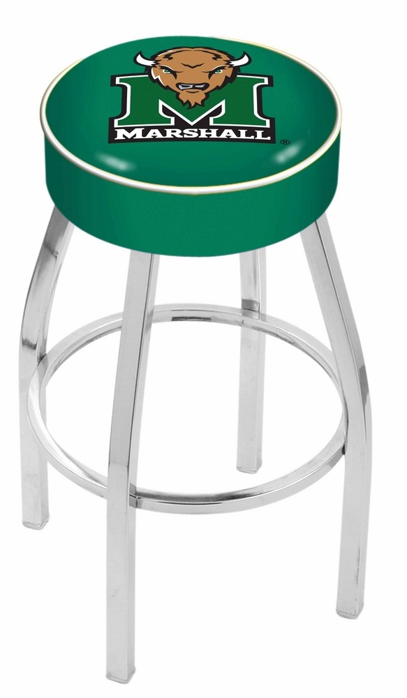 Marshall Thundering Herd (L8C1) 25" Tall Logo Bar Stool by Holland Bar Stool Company (with Single Ring Swivel Chrome Solid Welded Base)