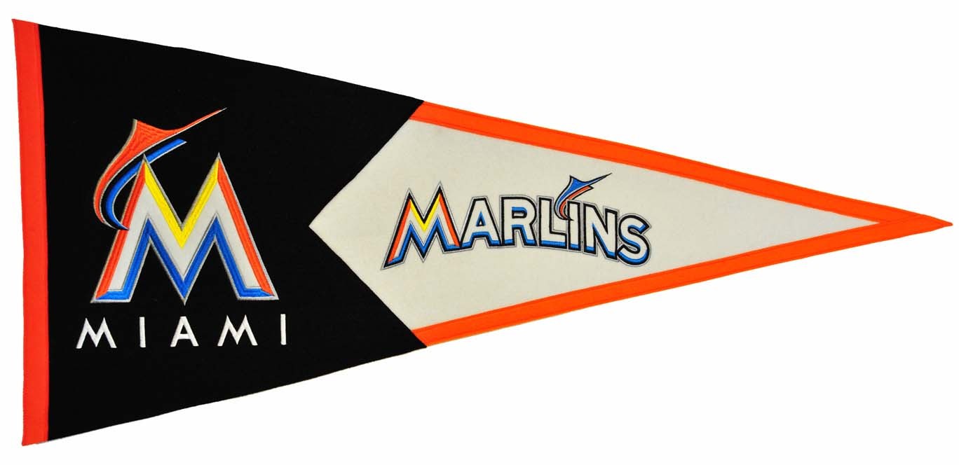 There's no better way to commemorate your favorite MLB team, the Miami Marlins, than with a quality wool pennant. These fantastic pennants are exactly like the old-fashioned ones of yesteryear and have to be seen to be believed. We guarantee that the only other places you'll find pennants like these are in antique shops or your grandpa's attic! Start a collection now which will grow in value through the coming years!