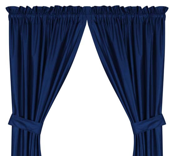 The drapes do not include a team logo, they are color coordinated with the team colors.