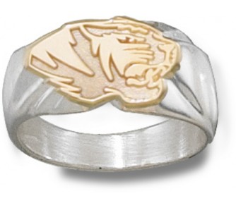 Missouri Tigers 7/16" 10KT Gold "Tiger Head" on Sterling Silver Men's Ring (Size 10 1/2)
