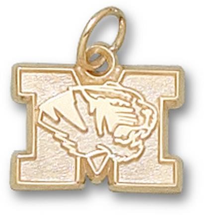 Missouri Tigers New "M with Tiger Head" 3/8" Charm - 14KT Gold Jewelry