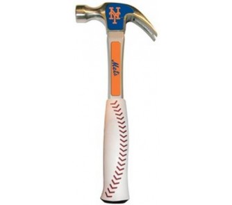 This Pro-Grip Hammer is a great gift idea for your favorite sports fan. The head is made of stainless steel, painted in New York Mets colors with hard fired enamel including team logo on both sides. The body is fiberglass and color matched to represent the team's colors, which also has the team name printed on both sides. Molded rubber grip is simulated football leather complete with the laces facing front. Rated 16 oz. construction grade all-purpose hammer.