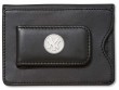 New York Yankees Sterling Silver Round "NY" on Black Leather Money Clip / Credit Card Holder