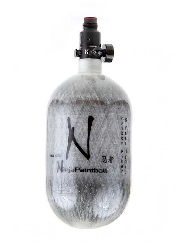 Ninja Paintball Carbon Fiber air tank proudly made in the USA. Comes with a Standard Ninja regulator mounted on it.