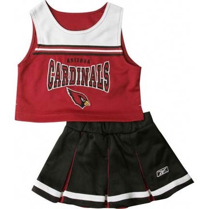 PLEASE NOTE:The manufacturer changes the design periodically. The uniform set that you receive may be slightly different than the one shown.Your little girl will cheer for joy when she sees this adorable Arizona Cardinals 2 Piece Cheerleader Jumper from Reebok!