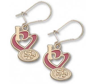 San Francisco 49ers 1/2" "I Heart Logo" Enamel Dangle Earrings - 10KT Gold Jewelry