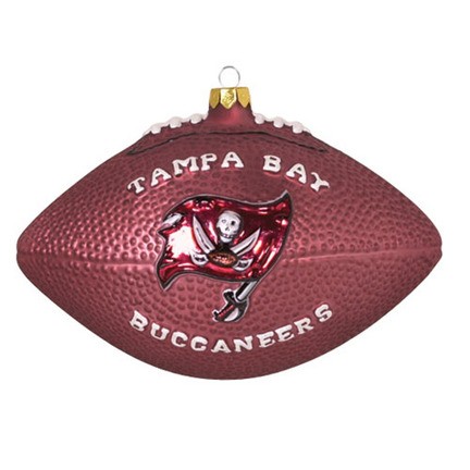 No football fan's home would be complete without one of these festive glass football ornaments! Each glass football is designed with official NFL team colors emblazoned with an authentic Tampa Bay Buccaneers logo. Each football ornament has an official NFL logo embossed on the back and is packaged in an official NFL box.