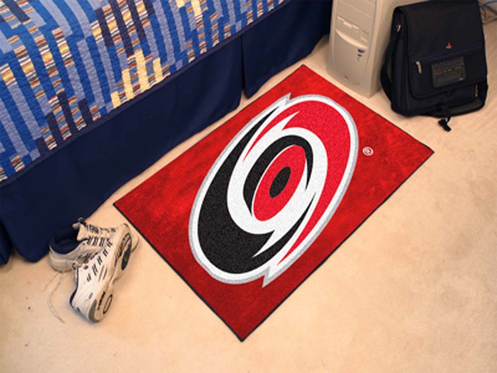Decorate your home or office with this NHL Starter Mat area rug featuring the official Carolina Hurricanes colors and logo. Made from 100% nylon carpet and non-skid Duragon® latex backing. Machine washable.