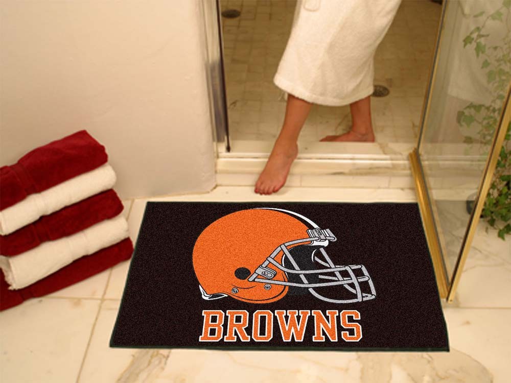 Show your team pride and add style to your tailgating party with this NFL All Star Floor Mat by FANMATS. This area rug is decorated in official Cleveland Browns colors and logo. Made from 100% nylon carpet and non-skid Duragon® latex backing. Machine washable.