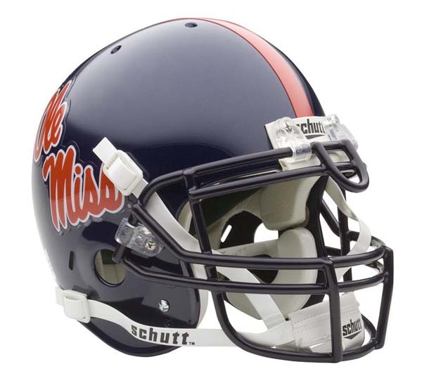 Support your favorite team with the authentic Mississippi (Ole Miss) Rebels Schutt Air helmet, preferred by the majority of the major college and university teams. Identical to the equipment used at your favorite games, these full-size helmets include the exact detailing of the real gear, from the shell to the chin strap. Officially licensed and available for over 60 major collegiate teams. Note: This helmet has a small metal bar coming from the inside left and extending to the inside right. It is unnoticable from the outside, and its only purpose is to restrict entry of the head into the helmet.