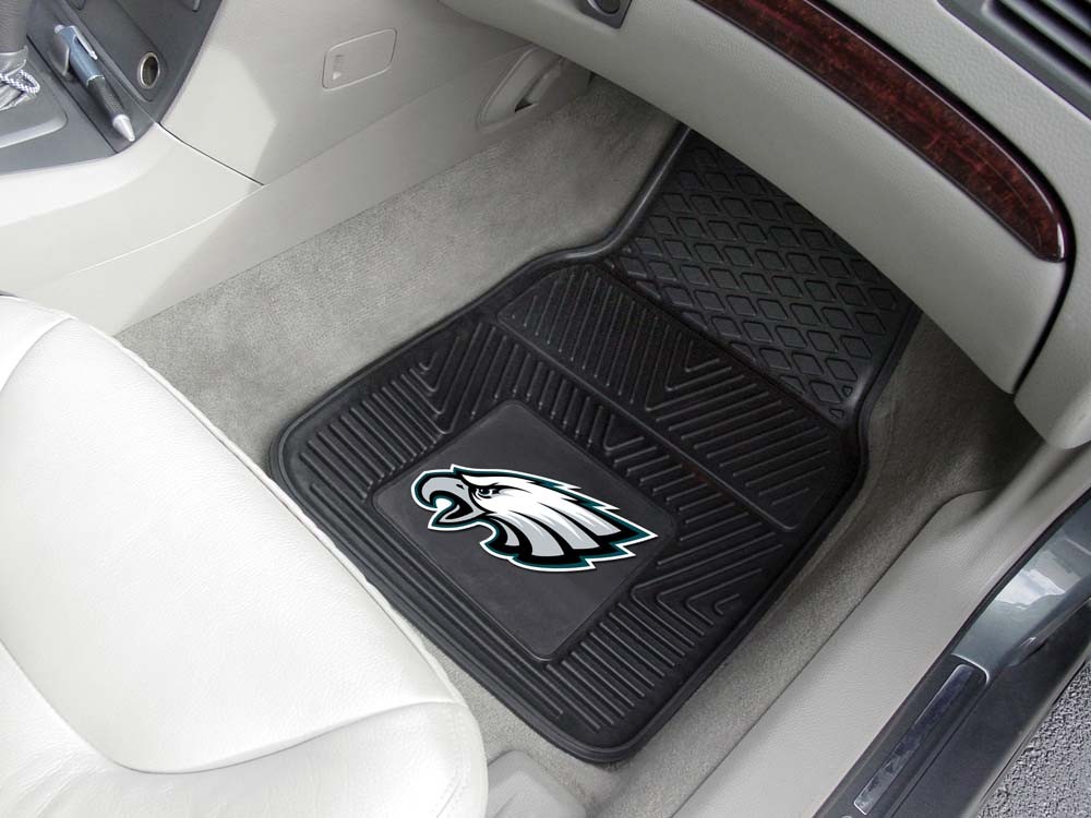 Protect your vehicle's flooring while showing your Philadelphia Eagles pride with car mats by FANMATS. 100% vinyl construction with non-skid backing ensures a rugged and safe product. Universal fit makes it ideal for cars, trucks, SUVs, and RVs. The officially NFL licensed design in true team colors are permanently molded for longevity.