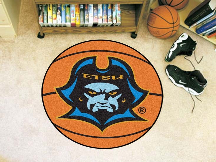 For all those East Tennessee State Buccaneers Fans out there: basketball-shaped area rugs by FANMATS! Made in the U.S.A. 100% nylon carpet and non-skid Duragon®: latex backing. Machine washable. Officially NCAA licensed. Chromojet painted in true team colors.