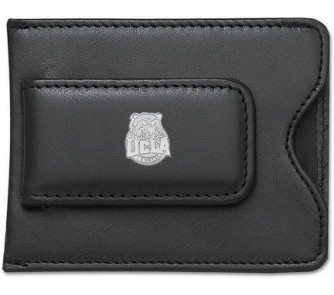 UCLA Bruins Sterling Silver Circle Joe on Black Leather Money Clip / Credit Card Holder